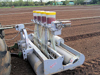 It's around 10 weeks since the last significant rainfall. Rain was forecast for last night but amounted to nothing. At least it has meant we have been able to keep to our drilling and planting schedules. This photo shows the babyleaf drill , but also 15 acres of sweetcorn have gone in this week. Weekly lettuce planting has continued unhindered by the rain. More salad onions are due to be drilled over the weekend if the rain stays away.